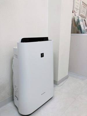 今までは飛沫感染や接触感染と言われていましたが、エアロゾル化の可能性も指摘されており、当院では『空気清浄機大量投入作戦』を決行しました。